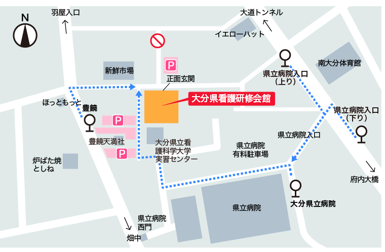 大分県看護連盟の事務所は、「大分県看護研修会館」の1F(右奥)です。