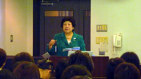 先生からは、一歩先の看護管理とは、政策に強くなれる看護管理者であることやこれまでの看護職の国会議員が係わった看護政策をわかりやすく、ユーモアたっぷりに講演をしていただいた。